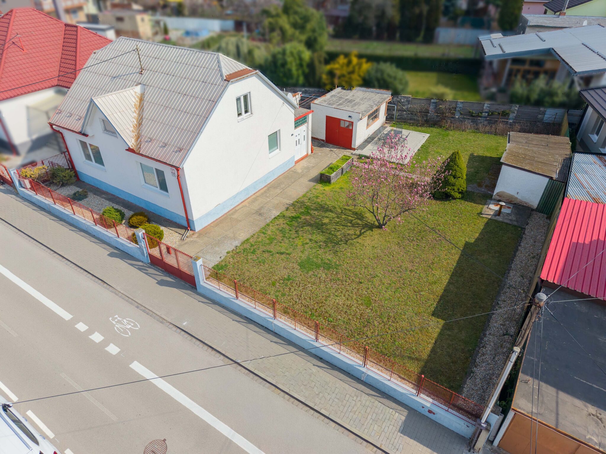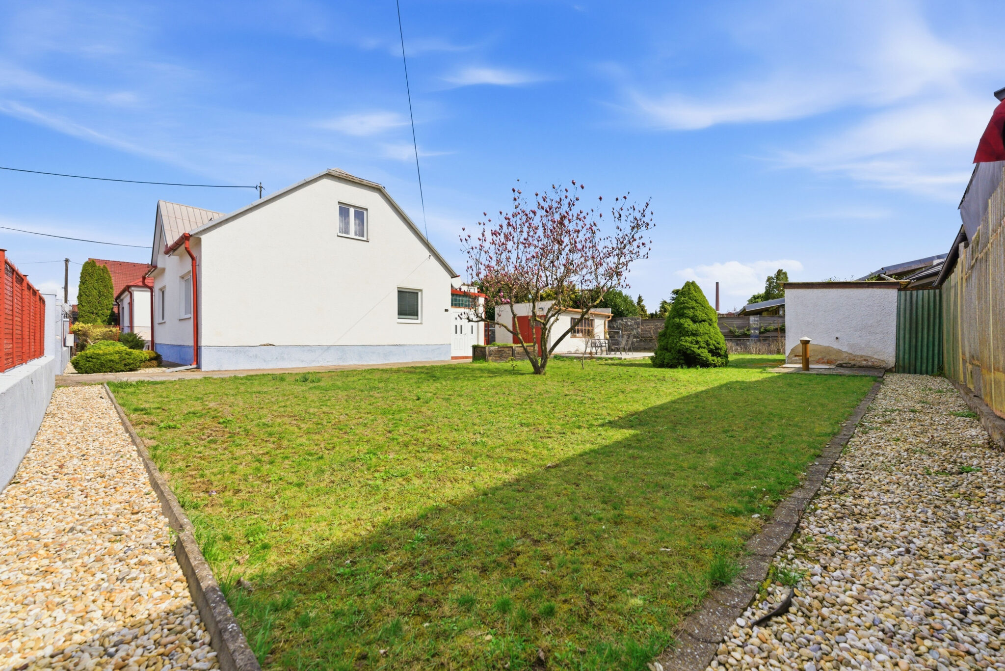 Pozemok je ideálnej rozlohy 613 m2 a je krásne slnečný počas celého dňa. Nevyžaduje si veľké úpravy – pokosené máte rýchlo a môžete naplno tráviť čas s rodinou na terase s výhľadom na krásne rozkvitnutú Magnóliu, ktorá je dominantou záhrady.