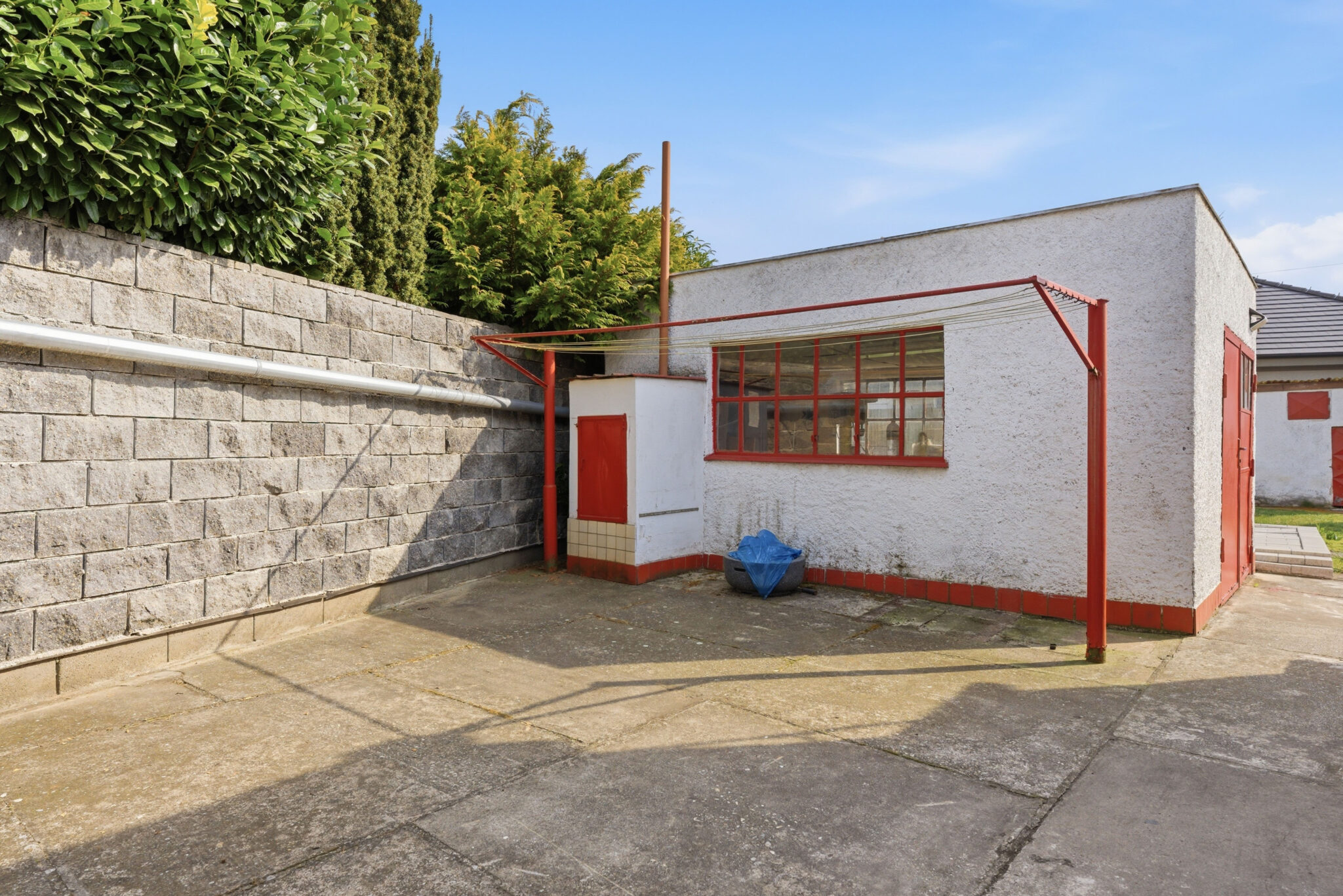 Na záhrade nájdete samostatne stojacu garáž, hospodársku miestnosť, menšiu stavbu, kde sa kedysi chovali sliepky, pivnicu na zeleninu a šikovnú údiarničku. Dostatok priestoru pre relax nájdete na terase hneď vedľa garáže. Garáž bola navrhovaná ešte v dobách, keď boli autá o niečo menšie ako dnes. Jej výmera je síce slušných 17,39 m2 no vstupná brána je menšia, reto skôr poslúži ako náraďovňa.